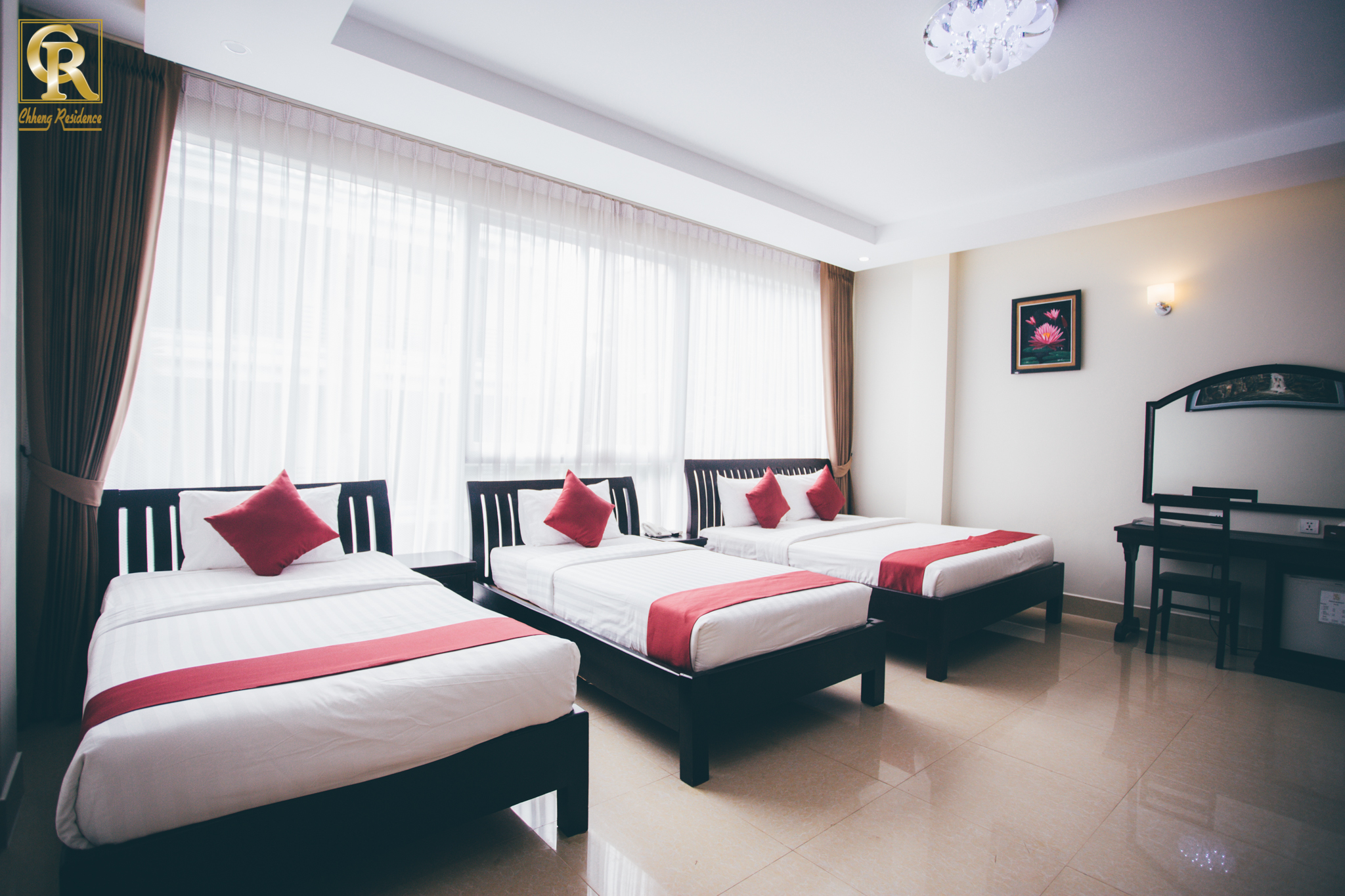 Deluxe Family Rooms pool view offer peaceful, well designed spaces in the heart of Siem Reap City. Flat-screen TVs, Wi-Fi and our rooms' and bathroom's amenities come as standard. There are 2 rooms, at 56 square meters, offer more living space to provide an even greater level of comfort. Each room is furnished with a modern bathroom complete, offering the best deal with reasonable price. Deluxe Family pool view come with one king bed and twin size bed or one queen bed and two double bed.